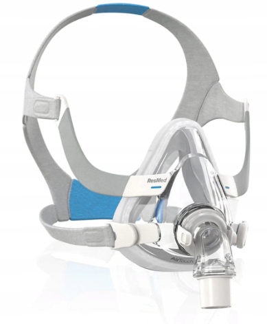 Maska twarzowa CPAP AirFit F20 ResMed to pełnotwarzowy model przeznaczony do terapii bezdechu sennego. Zakrywa usta i nos, dlatego sprawdza się u osób, które oddychają przez usta. Dzięki przemyślanej konstrukcji poprawia komfort terapii i zwiększa skuteczność leczenia.